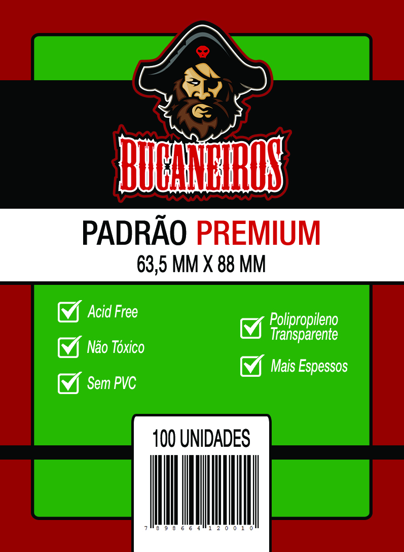 Sleeves com tamanho e espessura ideal para proteger suas cartas e para ser usado junto aos inserts da Bucaneiros.